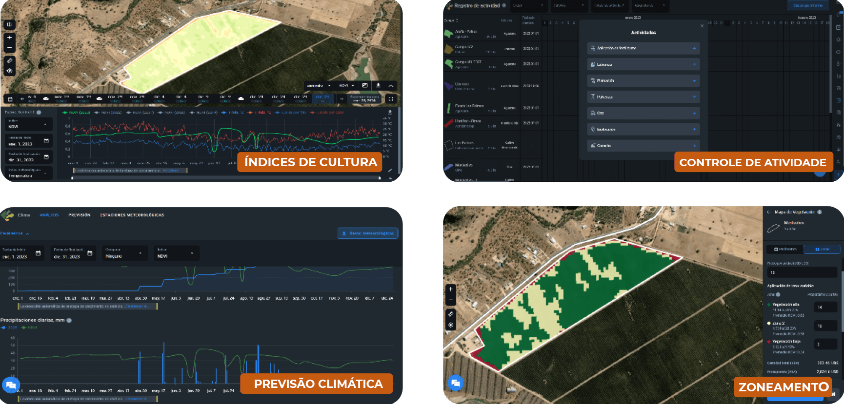 Utilizando imagens de satélite, ajudamos os agricultores a gerir vários campos, reduzir custos, otimizar recursos e tomar decisões. Esta tecnologia permite, por exemplo, a medição e controlo do stress hídrico e a monitorização de pragas.
