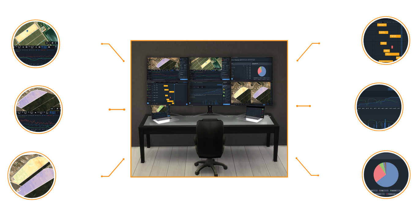 Ao aplicar algoritmos proprietários, é possível desenvolver modelos de análise de umidade do solo eficazes e precisos. Os mapas de humidade do solo resultantes, tanto a nível superficial como radicular, podem ser utilizados para monitorização diária, estimativa precisa do rendimento e estudo de tendências climáticas importantes.