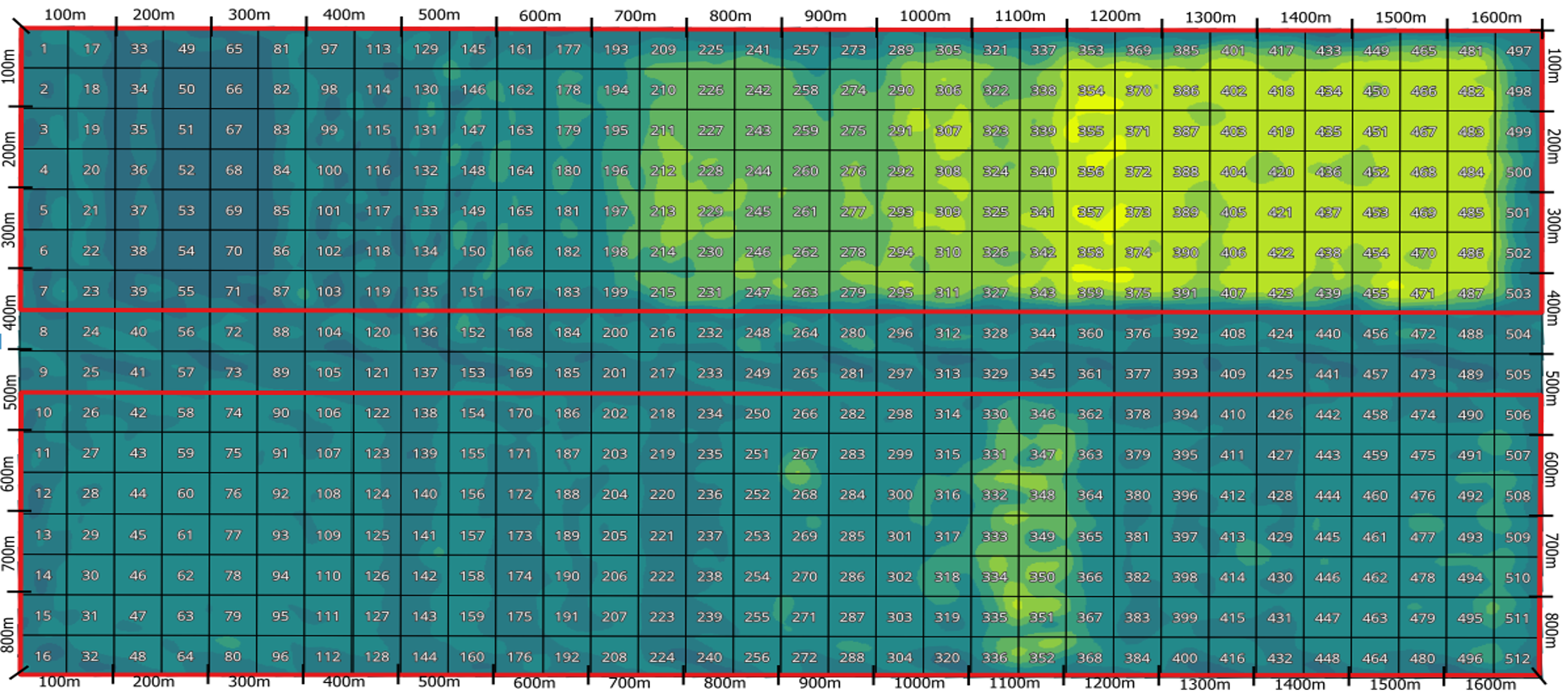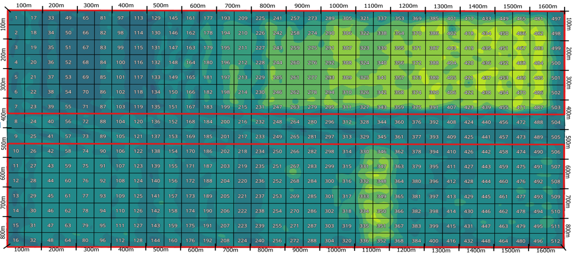 Detailed humidity with zoning and 50-meter grid.